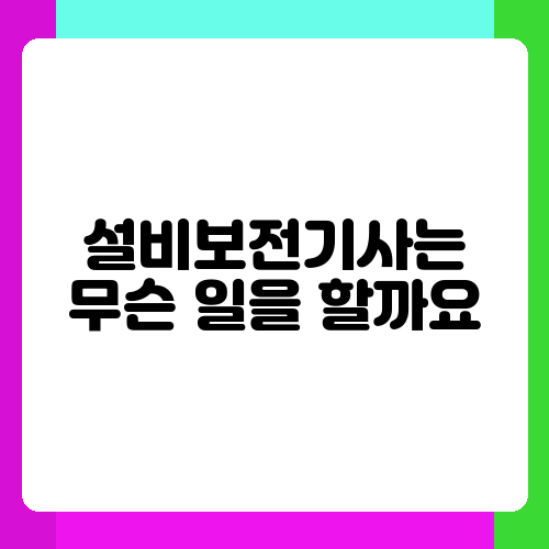 설비보전기사는 무슨 일을 할까요